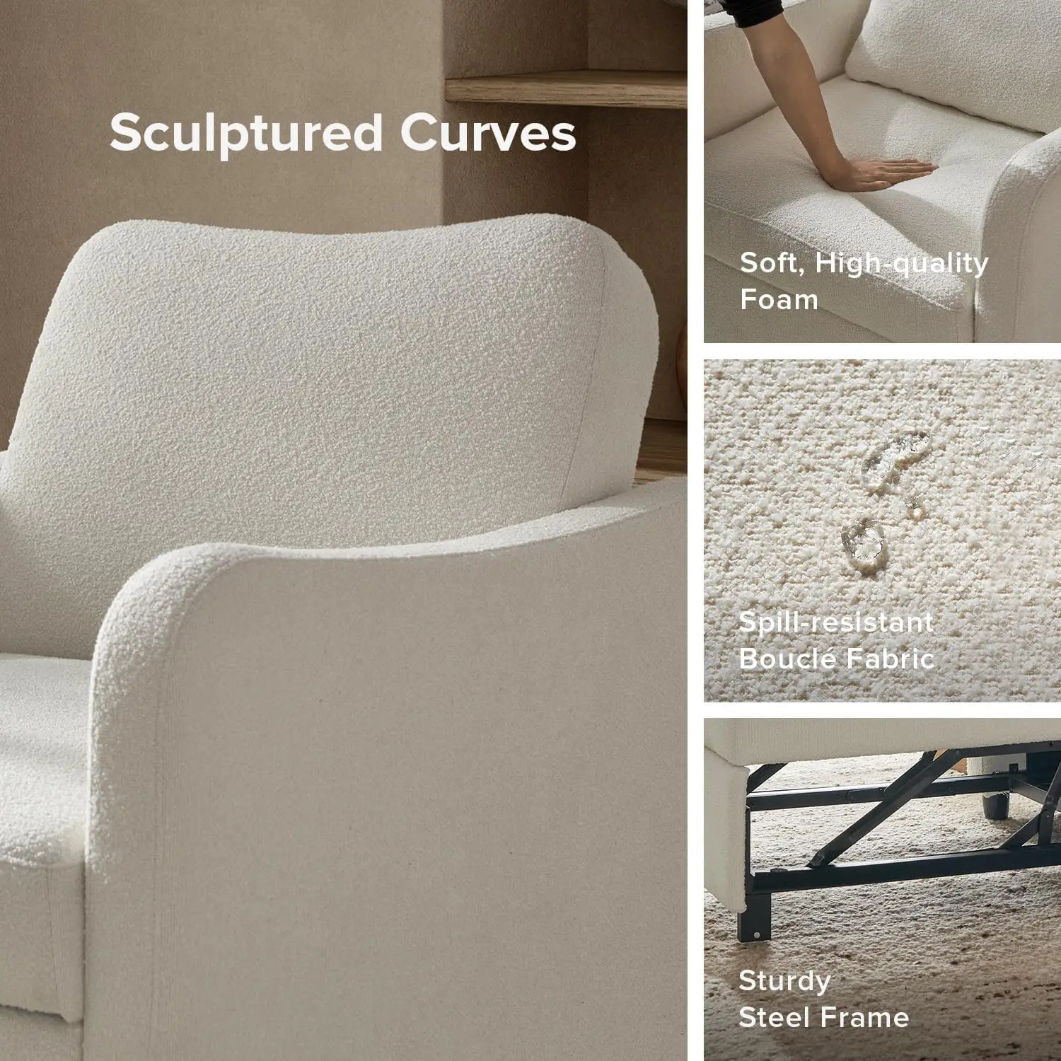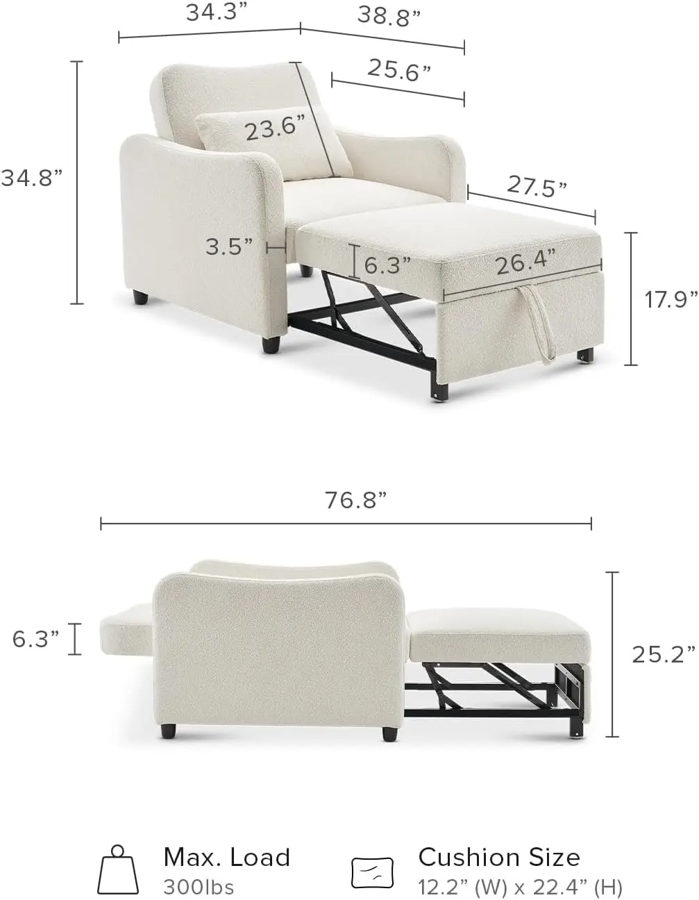 Transform your living space with the Sophie 4-in-1 Convertible Sleeper Chair—an elegant and versatile solution for modern homes. This multifunctional piece seamlessly transitions from a comfortable accent chair to a chaise lounge, cozy reading armchair, or a convenient pull-out sofa bed, making it perfect for small apartments, guest rooms, or home offices. Its sleek design and plush cushioning offer both style and comfort, while its practical functionality ensures you’re always ready for relaxation or overnight guests. Elevate your interior with this stylish, space-saving, all-in-one furniture essential.