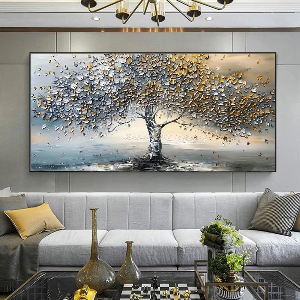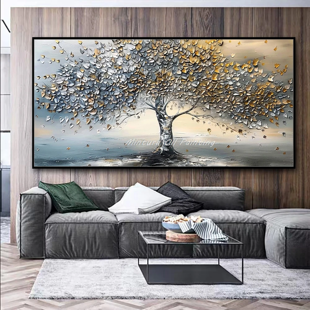 Knife painting, tree landscape art, handmade oil painting, textured wall art, 3D canvas poster, modern home décor, abstract wall art, living room canvas, contemporary art piece, artistic wall decoration,